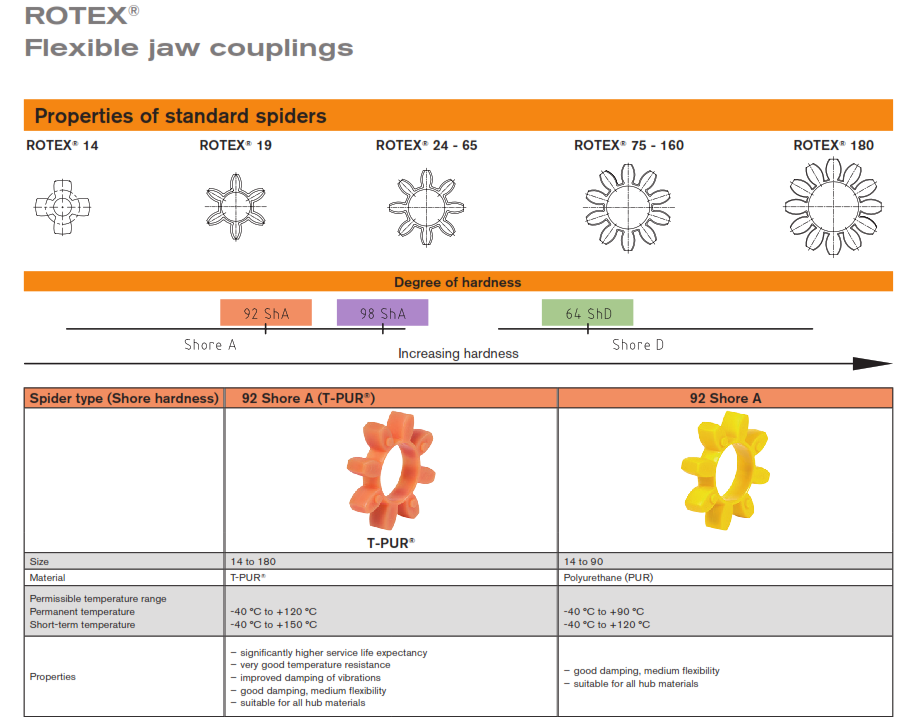 Vòng đệm Rotex 92 ShA: Sử dụng các ứng dụng công nghiệp thông thường, như bơm nước, quạt công nghiệp, hoặc động cơ servo.